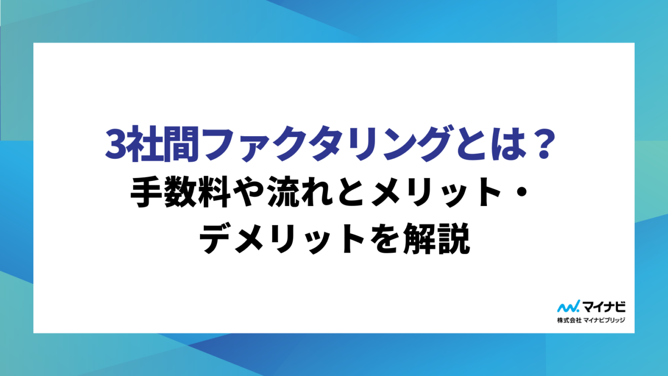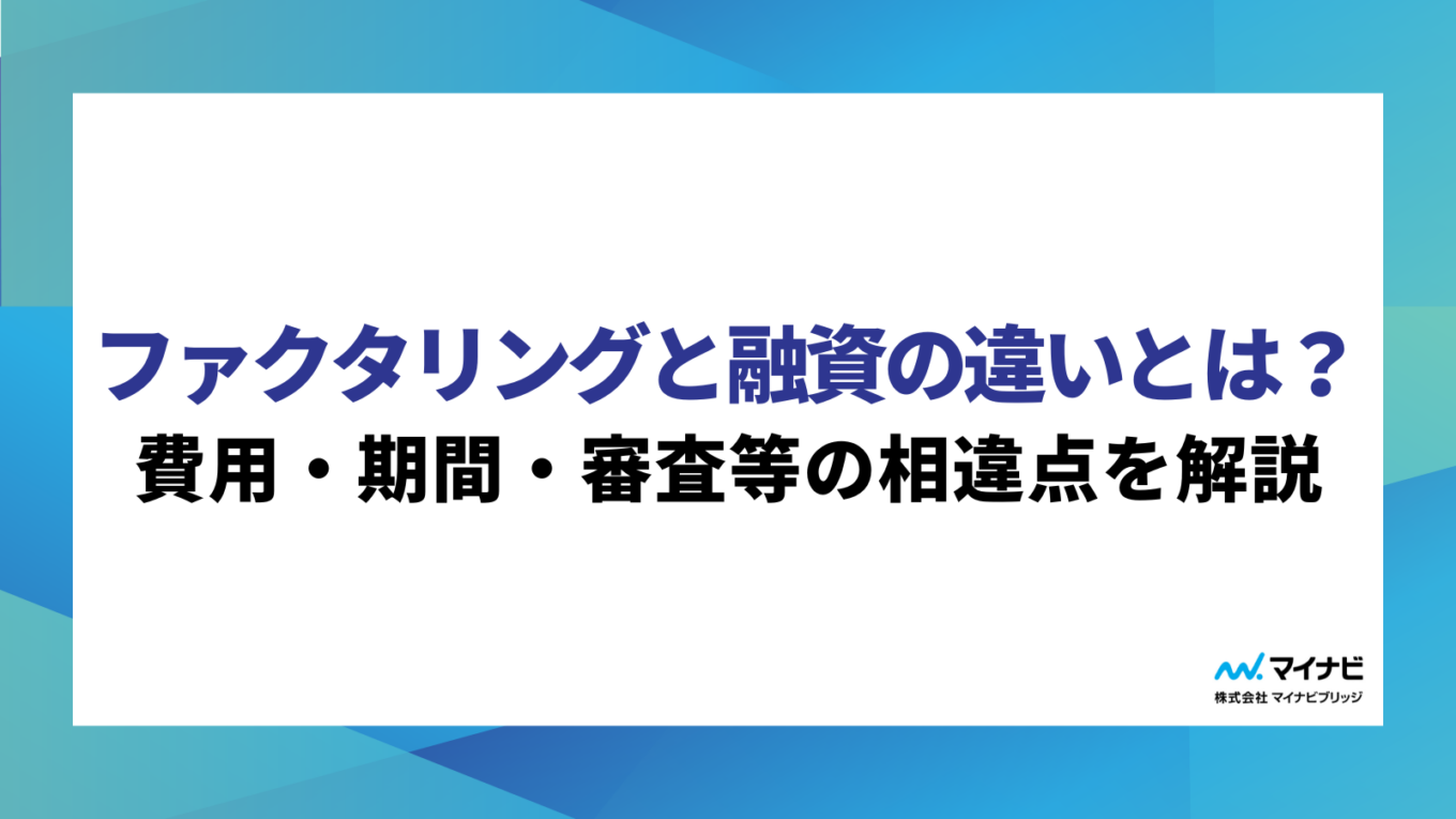 mynavibridge 最新記事を確認新着記事 中小企業はどんなファクタリングがおすすめ?選ぶポイントと注意事項 2025.12.17 キャッシュフロー ファクタリング審査が通らない!落ちる原因と解決策を解説 2025.12.17 ファクタリング ファクタリングと融資の違いとは?費用・期間・審査等の相違点を解説 2025.12.17 ファクタリング 3社間ファクタリングとは?手数料や流れとメリット・デメリットを解説 2025.12.17 ファクタリング 今話題の記事をピックアップ注目記事 資金調達・ファクタリングのお役立ちサイト 資金調達・ファクタリングのお役立ちサイト 資金調達・ファクタリングのお役立ちサイト